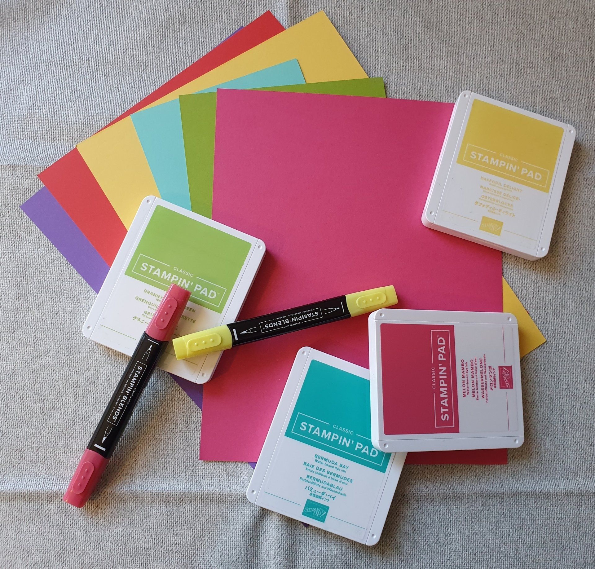 In jeder Kollektion gibt es zu jeder Farbe Stempelkissen, Farbkarton und Stempin´ Blends.