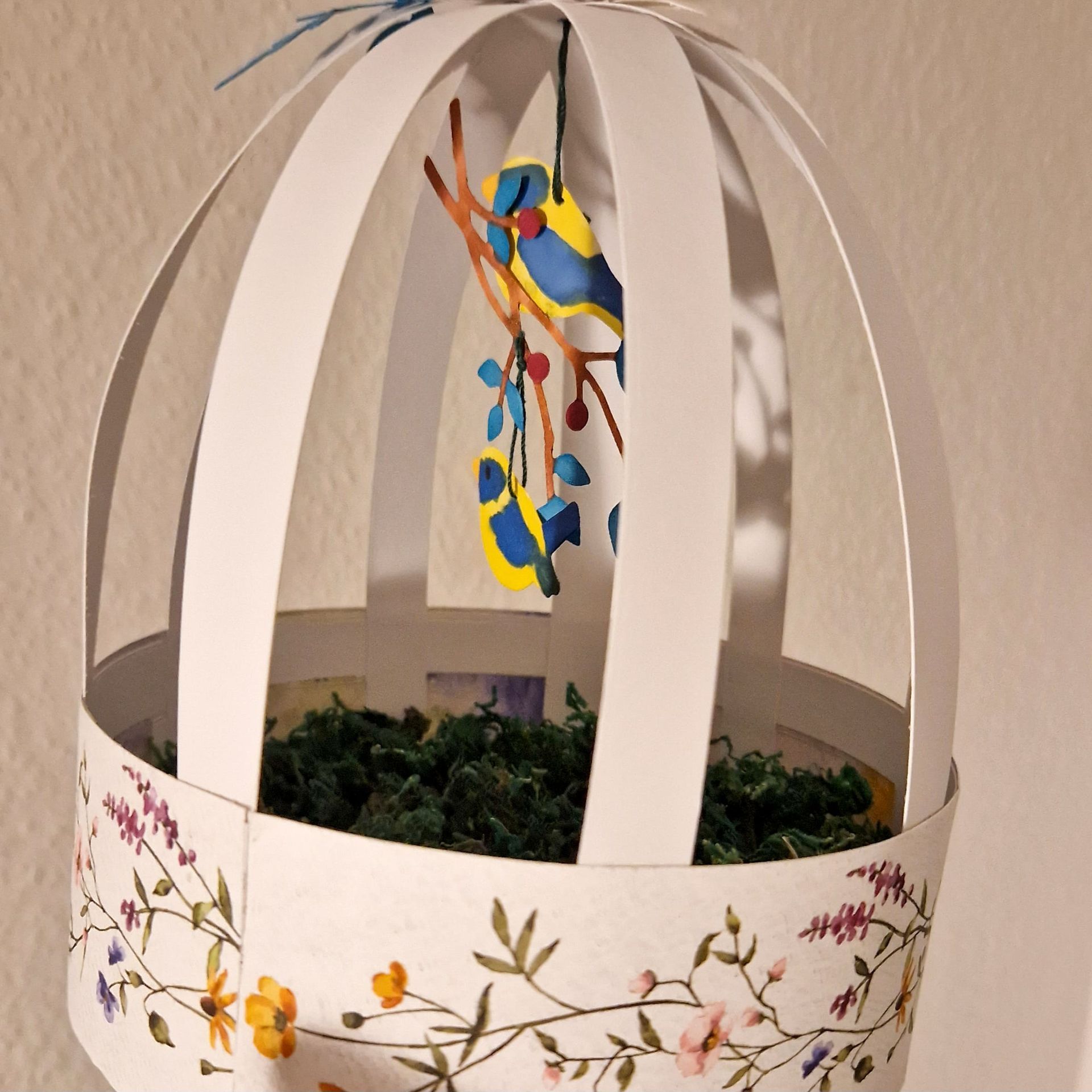 Nach einer wundervollen Begegnung mit Meisen in einem Urlaub in Stockholm, ist dieser Vogel ein ganz besonderer für mich geworden. Jedes mal wenn ich draußen eine Meise sehe freue ich mich und werde daran erinnert. Damit ich diese kleinen Vögelchen nun immer sehen kann und an dieses tolle Erlebnis erinnert werde, habe ich mich an meinen Basteltisch gesetzt und diesen Vogelkäfig gebastelt. Der Boden besteht aus einer Käeschachtel, die man sonst auch als Laternenboden benutzt. Mit etwas Designerpapier und weißen Farbkartonstreifen wurde der Rest zusammengeklebt. Die Vögel sind gestempelt und dann mit den Farben so ausgemalt, dass es aussieht wie eine Meise. Der Vogelkäfig hängt nun in meinem Bastelzimmer, so das ich die Meisen immer sehen kann. Heute ist der "Tag des Vogels" - an diesem Tag wird auf bedrohte Vogelarten aufmerksam gemacht, auf den Handel mit ihnen und das Vögel in der kalten Jahreszeit Schutz und Hilfe von uns Menschen benötigen. Also denkt daran, dass unsere Vögel hier im Winter, wenn es richtig kalt wird und friert, auch Hilfe benötigen und hängt ihnen Futter raus.